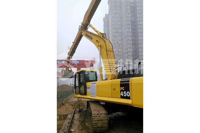 雙壹公司備有多臺長臂挖掘機,15-200米各種長度,一站式解決您的深坑挖掘難題。