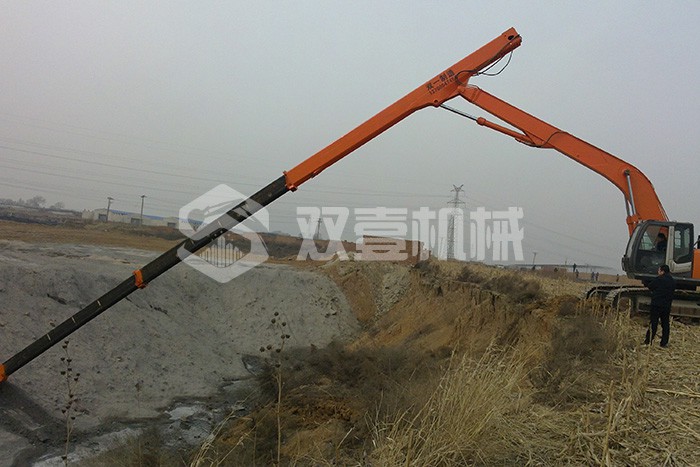 雙壹公司備有多臺長臂挖掘機,15-200米各種長度,一站式解決您的深坑挖掘難題。