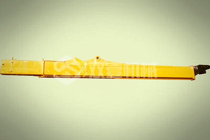 兩節伸縮臂是雙壹機械2005年自主研發的突破性產品,被多家同行模仿制造,從未被超越;臂長度19米,采用高噸位的三機聯動折彎設備折成U型,雙U型對接的焊接方式。