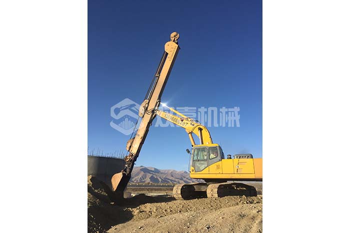 超長四節(jié)臂:總長度可達(dá)48米,臂內(nèi)可再伸出3節(jié),施工深度42.5米,配帶貝殼斗1.8立方或挖掘斗1.0立方。